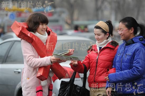 2011年12月1日,一名大学生在为路人发放《预防艾滋病》宣传手册。当日是第24个“世界艾滋病日”,乌鲁木齐市团委组织新疆财经大学的志愿者,在街头为过往市民发放《预防艾滋病》宣传手册3000余份。据了解,全疆艾滋病病毒感染者总人数据估算已超过6万人。