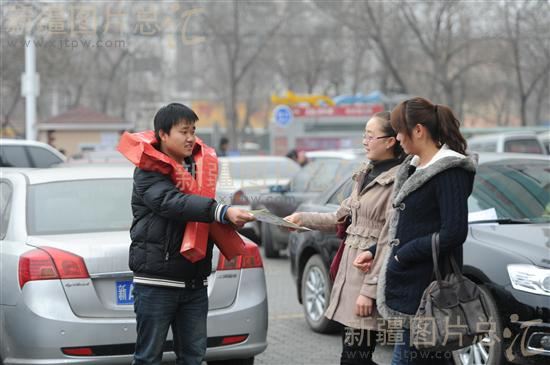 2011年12月1日,一名大学生在为路人发放《预防艾滋病》宣传手册。当日是第24个“世界艾滋病日”,乌鲁木齐市团委组织新疆财经大学的志愿者,在街头为过往市民发放《预防艾滋病》宣传手册3000余份。据了解,全疆艾滋病病毒感染者总人数据估算已超过6万人。