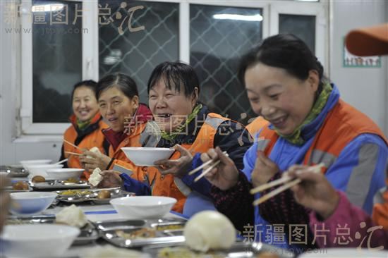 2011年11月28日,保洁员在乌鲁木齐市沙依巴克区八一街道办事处保洁员就餐点吃早餐。
