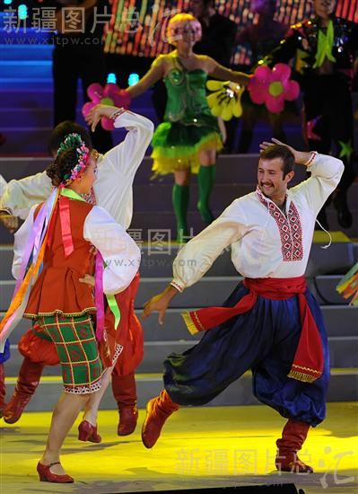 2011年7月19日,来自乌克兰的演员在表演舞蹈。