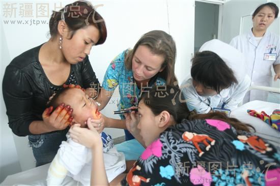 2008年8月24日,来自新疆富蕴县喀拉布勒根乡的农民阿力曼·再依罗拉紧紧握住了美国医生Kerri的手,用不太流利的汉语激动地说:“太感谢你们啦!”