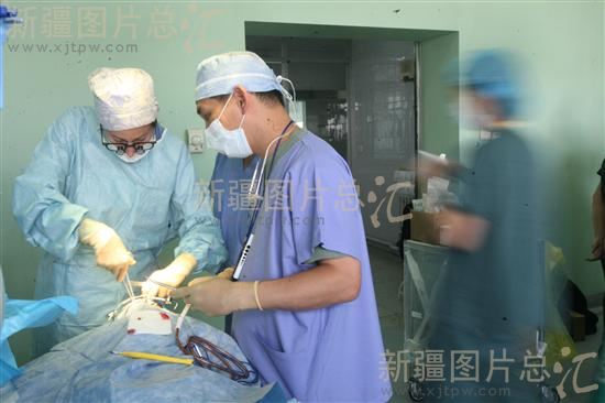 2008年8月22日,手术正在紧张进行中。本次活动共为来自喀什、和田等地的90名唇腭裂患儿实施了手术。