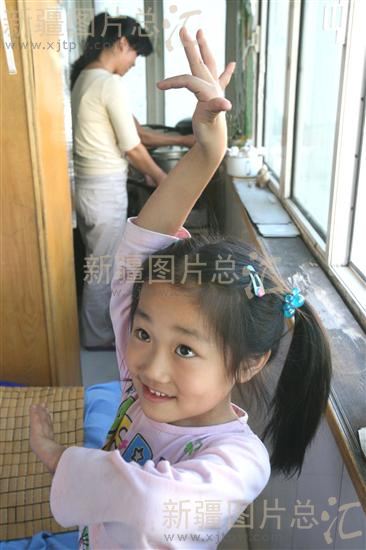 2008年8月21日,9岁的李京京按时来到乌鲁木齐市新民路街道办事处南大湖社区农民工子女艺术团,开始一天的舞蹈训练。随着欢快的舞蹈节奏,京京和小伙伴们重复着每一个舞蹈动作。一场“热舞”下来,孩子们的汗水已湿透衣襟。