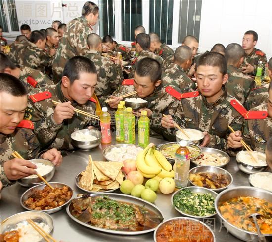 2013年11月20日,新战士正在享用到达部队的第一顿晚餐。