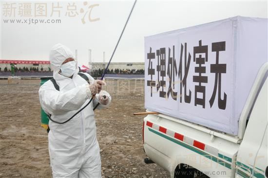 2013年4月26日,检疫人员进行演练。当日,自治区防治重大动物疫情应急处置演练和现场观摩会在新疆玛纳斯县举办。来自自治区各地、州、市、县和新疆生产建设兵团的防治重大动物疫情指挥部和畜牧兽医局负责人及畜牧厅系统有关业务处室、直属单位专家300多人在现场观摩演练。