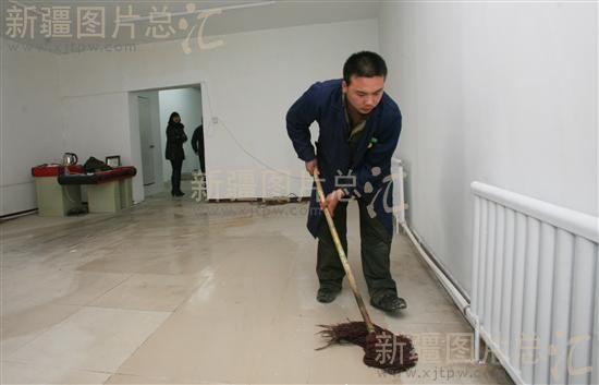 2013年11月12日,直销店工作人员在新建成的乌鲁木齐市边疆宾馆蔬菜直销点打扫卫生。