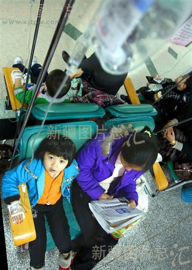 2011年11月24日,因呼吸道感染的儿童在乌鲁木齐市儿童医院接受输液治疗。乌市连日来的大雾天气,造成空气中灰尘颗粒较大,细菌、病毒也漂浮其中,哮喘、咽喉炎、支气管炎等呼吸道疾病极易发作。据该院医生介绍,来医院就诊的患儿比平日多出4成左右。医生建议市民外出可戴上口罩,注意防寒保暖。