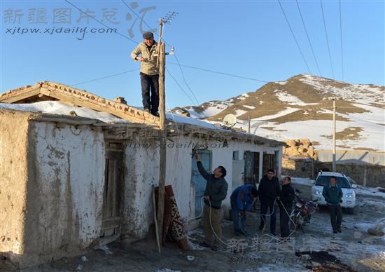 2013年11月28日,工作人员为哈萨克族牧民安装“户户通”电视。