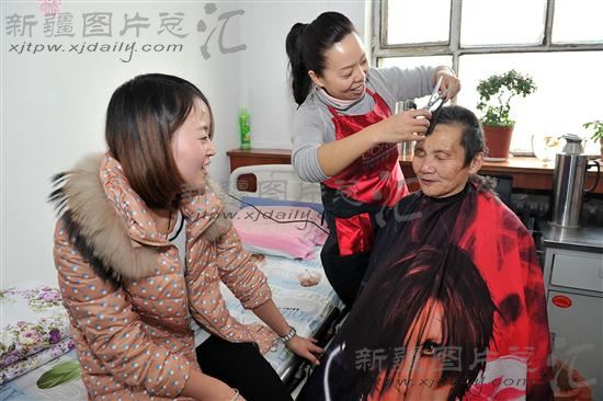 11月29日,志愿者在乌鲁木齐福乐园老年公寓为失明老人理发。12月3日是第22个国际残疾人日,今年的主题是:消除障碍,共建一个包容和发展的社会。新疆红石慈善基金会以网络为平台,号召举行了此次公益慈善活动,50余名志愿者向50名残障老人提供了理发、理疗、包饺子、文艺表演等爱心服务。莲慧老年慈善互助团还送来了面粉、清油等生活用品,乌鲁木齐雷锋车队为瘫痪老人送来了百余件纯棉尿布,新师大蜡烛爱心社送来了演出。活动进行的三个小时中,残疾老人感受到了温暖和关爱,甚至是儿女般的呵护,志愿者们也传递了一片爱心。
