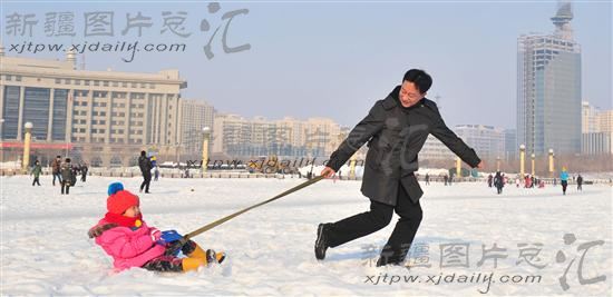关键字:乌鲁木齐 广场 市民 雪橇 冬天 下雪 父女 雪景 城市