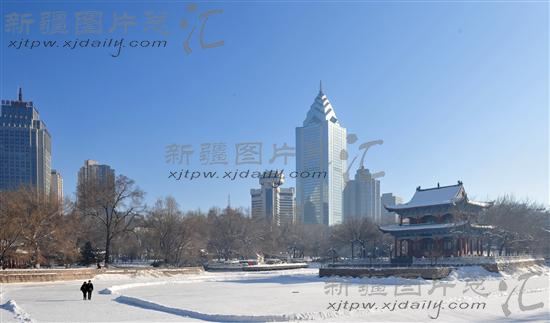 关键字:蓝天 乌鲁木齐 城市街景 高楼 冬季 雪景 传统建筑 建筑 散步 行人 城市景观