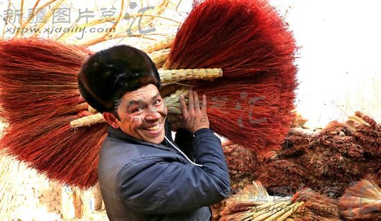 2012年12月26日,伽师县江巴孜乡阿亚格吐曼贝希村农民阿木提江在收购扫把。他所在的村早已成为远近闻名的“扫把村”,并成立了唐努尔扫把专业合作社,会员400余户,年销售额达百万元,产品远销乌鲁木齐、吐鲁番、库尔勒、和田等地。