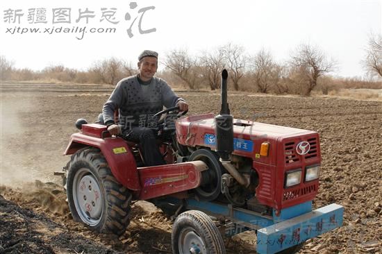 2007年03月17日,在新疆吐鲁番市恰特卡勒乡其盖布拉克村,村民司马义·吐尔逊在自家地里耕地。