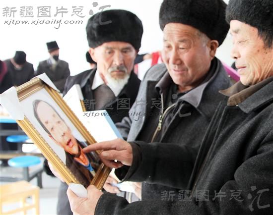 2013年1月22日,新疆阿克苏地区阿瓦提县养老院的老人在欣赏自己的照片。在新春佳节来临之际,阿瓦提县委开展为养老院老人体检、送春联等多种形式的活动,丰富了老人的业余生活。