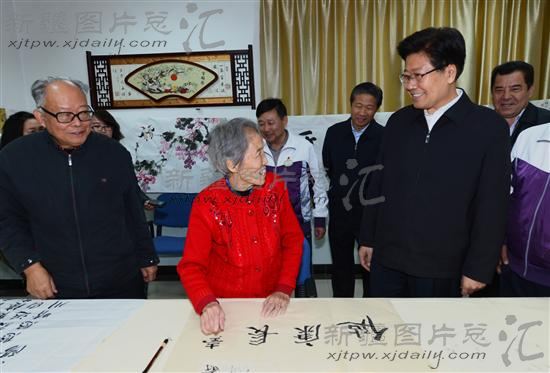 张春贤走进福利院二楼的图书阅览室,几位老人正在练习书法。“‘健康长寿’,这几个字写得很好。”张春贤说,在新疆,尊重、关爱老年人有着极为特殊的意义。尊重老人,就是尊重历史,就是对历史负责。新疆今天的成就是在无数老同志奋勇拼搏的基础上创造的。