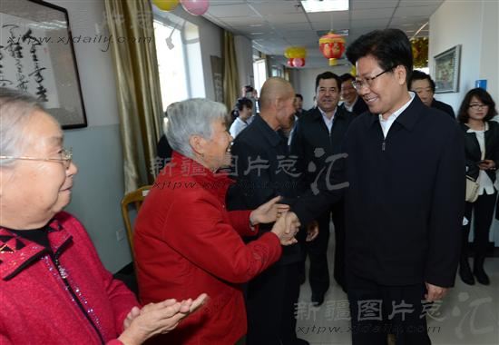 “祝各位老年朋友节日愉快,健康长寿,幸福安康。”2013年10月13日上午,中共中央政治局委员、自治区党委书记张春贤来到乌鲁木齐市养老福利院,看望慰问老年人,并向全疆各族老年朋友致以节日问候。