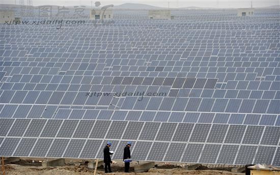 2013年3月15日,电力技术人员在对光伏发电设备进行检修。