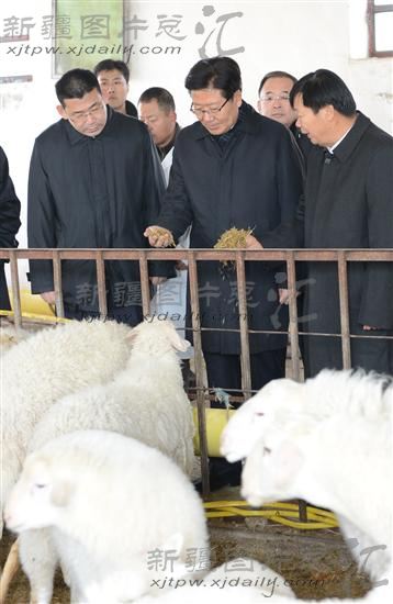 2013年11月26日,张春贤书记在哈密长河集团长青牧业公司的现代化养殖基地考察