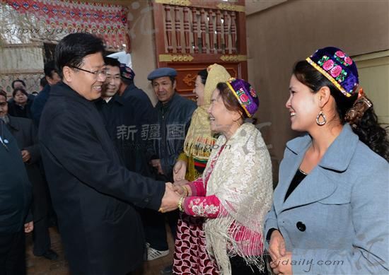 2013年11月26日,张春贤书记在哈密市贡瓜园看望乡亲们。