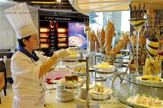 2011年8月26日,首届中国-亚欧博览会指定接待宾馆——新疆南航明珠国际酒店的厨师在设计西点菜品。目前,乌鲁木齐市20余家指定接待宾馆、酒店,积极组织力量做好准备,确保亚欧博览会的顺利举办。