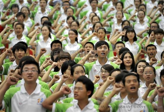 2011年8月23日,志愿者在加油鼓劲。