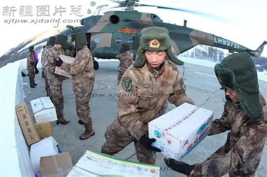 关键字:新疆 军区 陆航旅 阿勒泰军分区 红山嘴边防连 年货 送年货 春节 边防官兵 战士 官兵