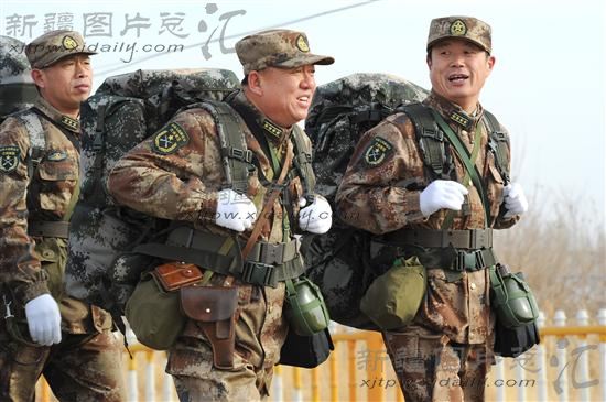 2013年12月13日,新疆哈密军分区领导带领部队官兵开展野营拉练。