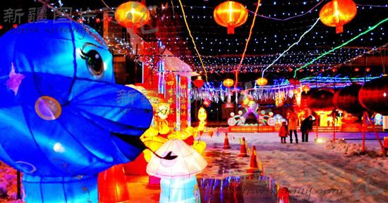 2013年2月20日晚,新疆奎屯市雪莲广场流光溢彩,千余盏花灯五光十色、绚丽缤纷,吸引了不少市民驻足观赏。