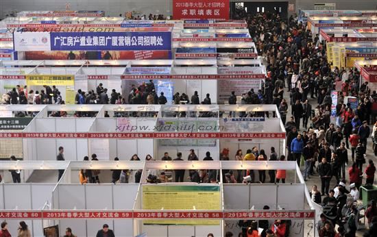 2013年2月23日,由自治区团委等单位举办的为期2天的2013新疆春季大型人才交流会,在新疆国际会展中心举行。400多家用人单位提供了2万余个岗位供应聘人员选择。据了解,此次交流会上大型国有企业单位较历届有所增加,对应聘人员的学历、工作经验等条件的要求也更高。