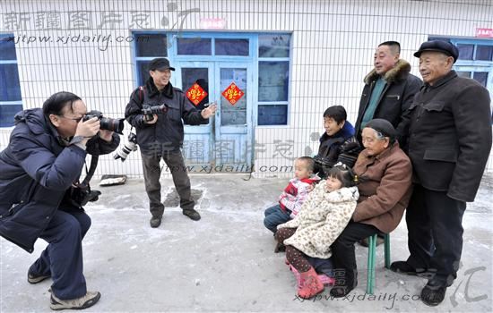 2013年1月30日,新疆哈密地区摄影家协会会员为农民拍摄全家福。当日,该协会组织会员来到巴里坤哈萨克自治县,为当地农牧民拍摄全家福,以此形式迎接新春佳节的到来。