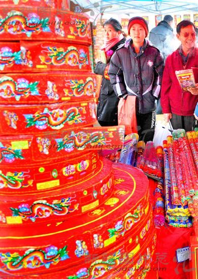 2013年2月4日,新疆伊宁市市民在购买烟花爆竹迎新年。