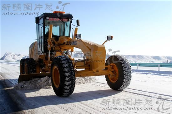 2013年12月14日,一台清雪车在G30高速公路上清雪。
