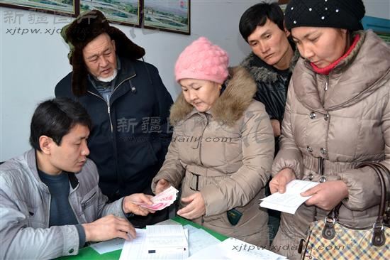 2013年1月15日,新疆博尔塔拉蒙古自治州精河县大河沿子镇民政办人员为城镇低保人员发放2013年1至2月低保金。当日,精河县大河沿子镇为427户城镇低保人员发放2013年1至2月低保金共计41.15万元,1003人从中受益。