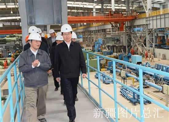 2013年5月3日,中共中央政治局委员、自治区党委书记张春贤在八钢南疆拜城300万吨钢铁生产基地考察。