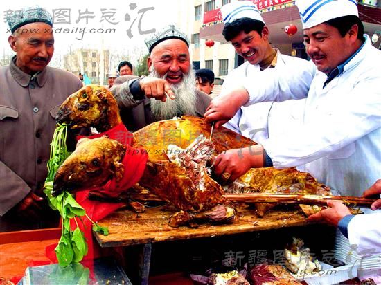 新疆巴楚县,品尝巴楚全烤羊。