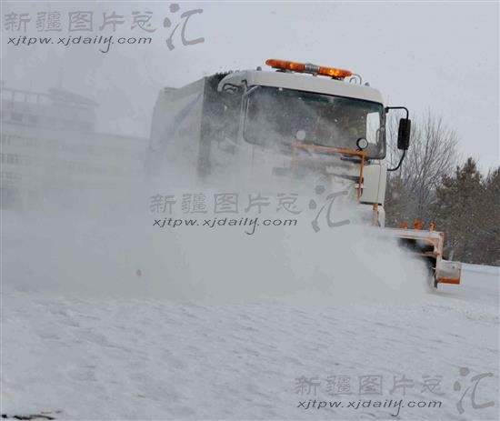 博州降中雪 大型清洁车清扫积雪(图)