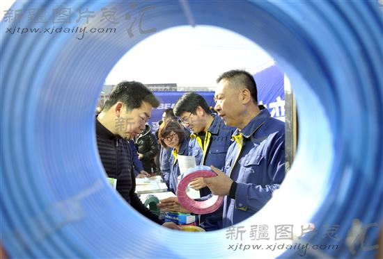 2013年3月15日,特变电工新疆线缆厂工作人员为消费者讲解正品与伪劣电线电缆的识别方法。当日,该厂在乌鲁木齐华凌市场举办“3·15”消费者权益保护日活动,教消费者如何辨别真假电线电缆。