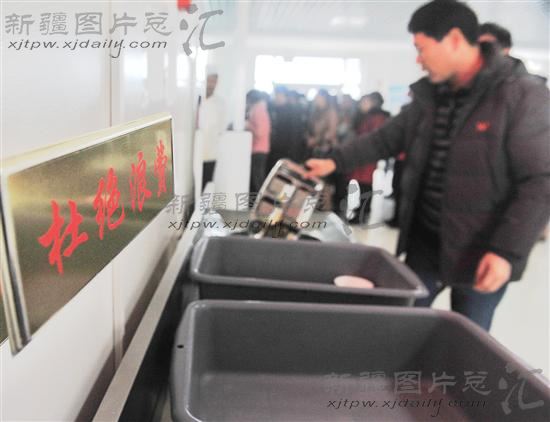 2013年2月5日,伊宁市建设局职工在市委机关食堂吃饭后,把空饭盆放在指定位置,一旁的垃圾盒里没有一点剩菜剩饭。