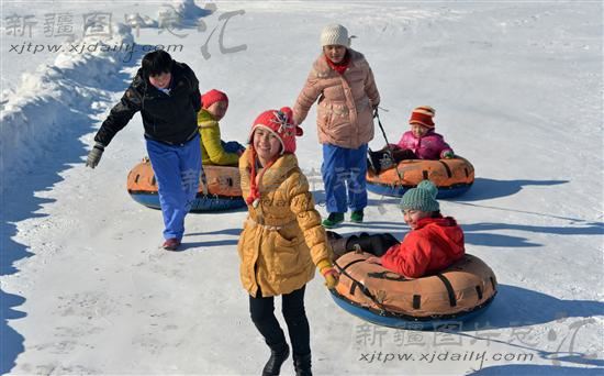 2013年2月1日,新疆哈密地区巴里坤哈萨克自治县大河镇的留守儿童走出家门,尽情享受冰雪之乐。