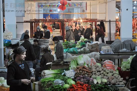 2013年12月18日,市民在伊宁市东城区就业市场购买蔬菜。