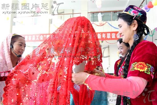 2013年12月24日,新疆哈密市各族职工在表演青苗麦西来甫。