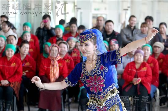2013年12月24日,新疆哈密市各族职工在表演民族舞蹈。