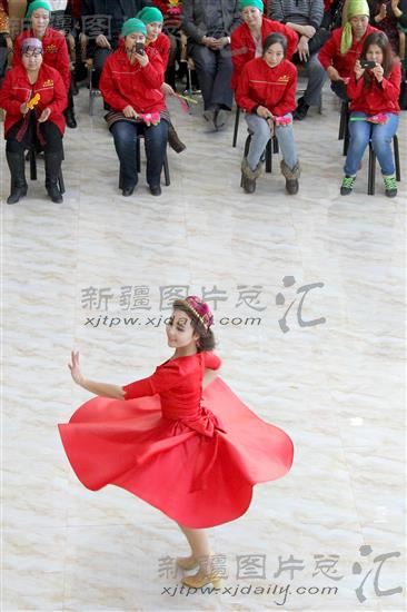2013年12月24日,新疆哈密市各族职工在表演民族舞蹈。