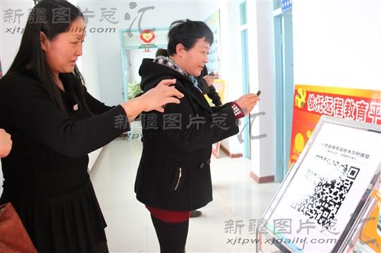 2013年12月18日,新疆博乐市小营盘镇塔翁哈木尔村的村民靳春莲等人用手机扫描村微信二维码。据了解,该村出资开通覆盖全村的WiFi,200多户村民可免费使用无线网络。村里将政策法规及村情民意、惠农补帖等内容发布到微信平台,村民们可及时方便了解各类信息。目前,该村实现用手机开会、手机控制大嗽叭,用微博、微信推介农产品等。