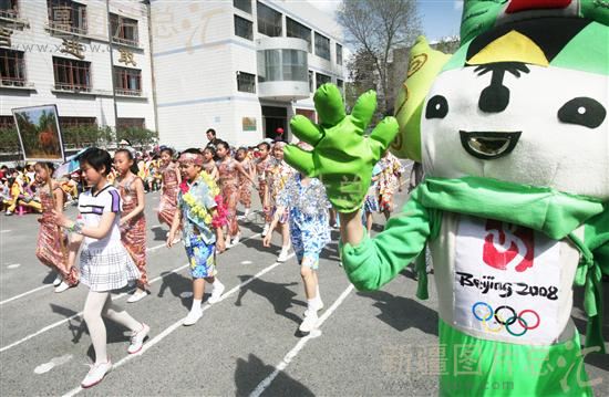 关键字:新疆 乌鲁木齐市 小学 校园 学生 运动会 奥运福娃 趣味比赛 迎接奥运 祝福奥运