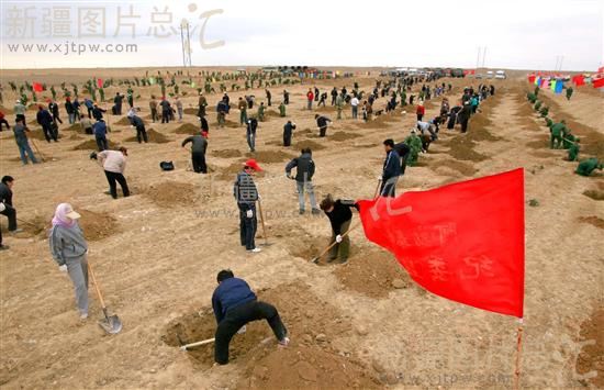 关键字:新疆 阿勒泰地区 北屯新城区 干部群众 义务劳动 植树造林 绿化 改造荒地 美化环境 绿色屏障