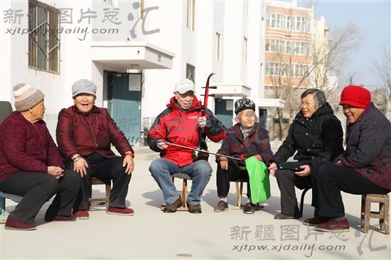 2014年1月6日,新疆生产建设兵团第十三师红星二场公租房的住户在楼前休闲。近年来,该场将公廉租住房建设作为改善民生的一件大事来抓,选择在交通便捷、公共设施配套齐全、生活成本较低的地段修建了106套公租房,户型以50平方米左右为主,配备了公共无障碍设施,方便行动不便的老人及困难群体居住。