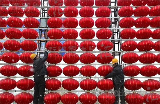 连日来,新疆和田地区墨玉县在县城主要街道悬挂起2500个灯笼和500个中国结,喜迎新春到来。