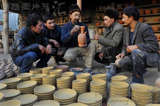 今年57岁的阿吉是自治区级土陶技艺传承人,他制作的土陶品种达一百多种,年销售额达40余万元。2012年,阿吉成立了土陶手工艺人专业合作社,招收40多名当地农民学习土陶制作技艺。