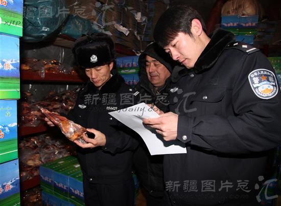 2014年1月6日,民警在塔城地区特色养殖场冷库检查该养殖场是否存在非法经营野生动物的情况。当日,塔城市森林派出所民警对部分野生动物养殖经营场所、活畜禽定点屠宰场,进行违法收购、出售野生动物行为的检查,严厉查处流通环节的违法犯罪行为。